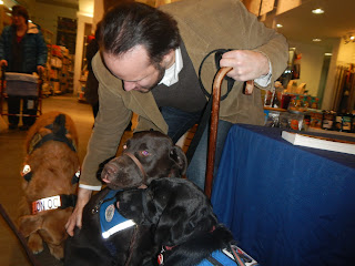 That opportunity happened...an other friend, Suzan, (who has service dog, Friday!!!) sent a note to the puppy raiser group that Lois was going to be at Planet Dog for a talk and book signing... so, tonite, we trucked up to Planet Dog. It was a bitter cold night (lucky for me) so there wasn't a huge crowd.
