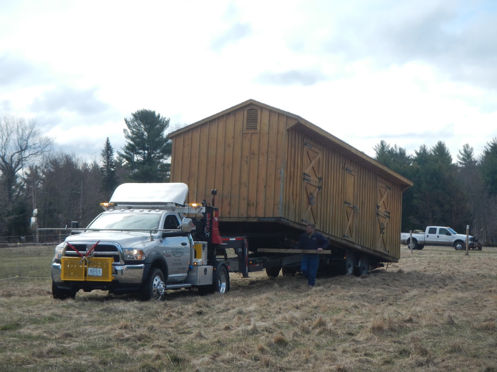 and then the truck arrived to get the barn. These are great little barns, and not really meant to be moved, but they certainly can be....
